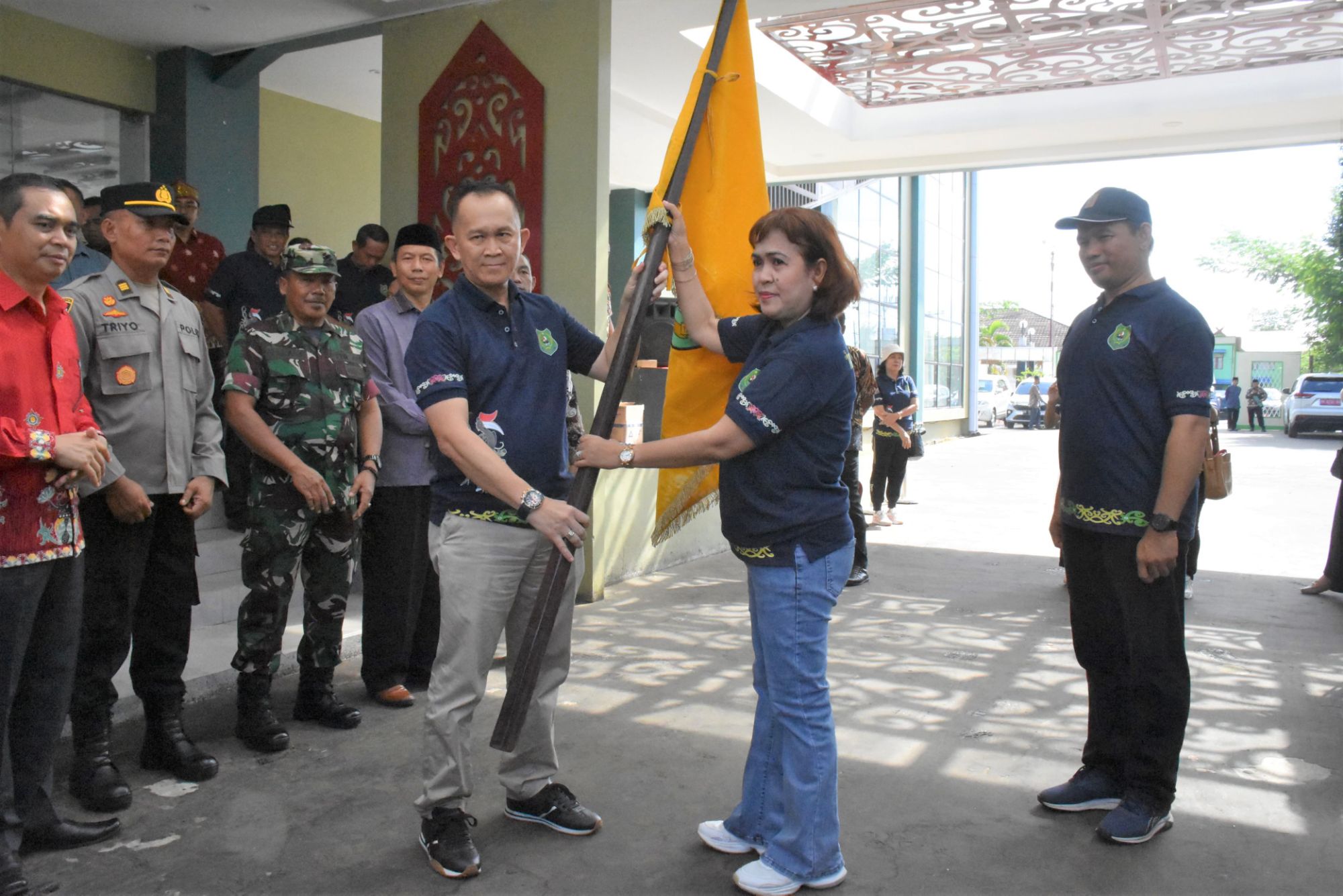 Sekda Kapuas, Septedy saat menyerahkan bendera kontingen kepada Kepala Disbudpora Kapuas, Apollonia, di Halaman Rujab Bupati Kapuas, Sabtu (11/5/2024). POSBORNEO.COM, KUALAKAPUAS – Sekretaris D...