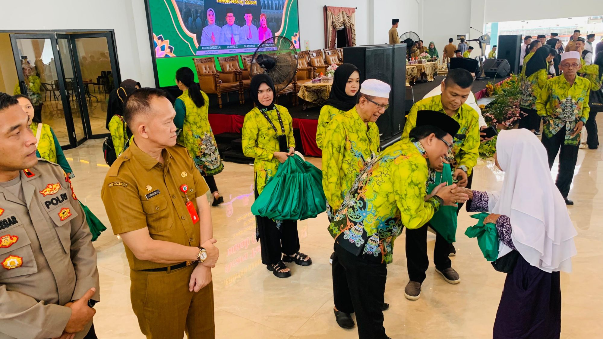 Pj Bupati Kapuas Erlin Hardi mengucapkan selamat kepada para Jamaah Calon Haji asal Kabupaten Kapuas, saat acara pelepasan di Hall Rumah Jabatan Bupati Kapuas, Senin (13/5/2024). POSBORNEO.COM, KUALAK...