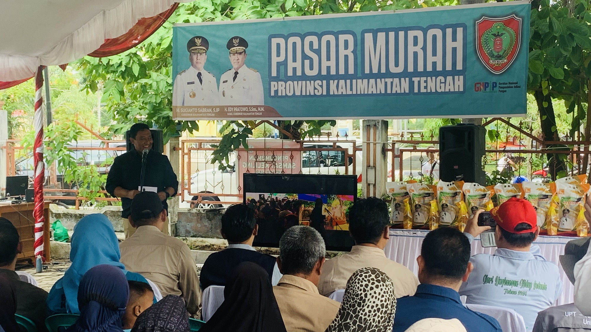 Wagub Kalteng, Edy Pratowo saat hadiri kegiatan pasar murah Pemprov untuk wilayah Kapuas, Minggu (16/6/2024).