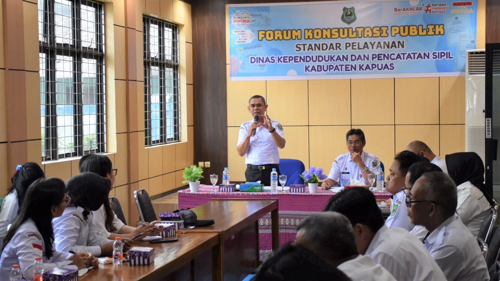 Asisten II Setda Kapuas Buka Kegiatan Forum Konsultasi Publik Standar Pelayanan Disdukcapil
