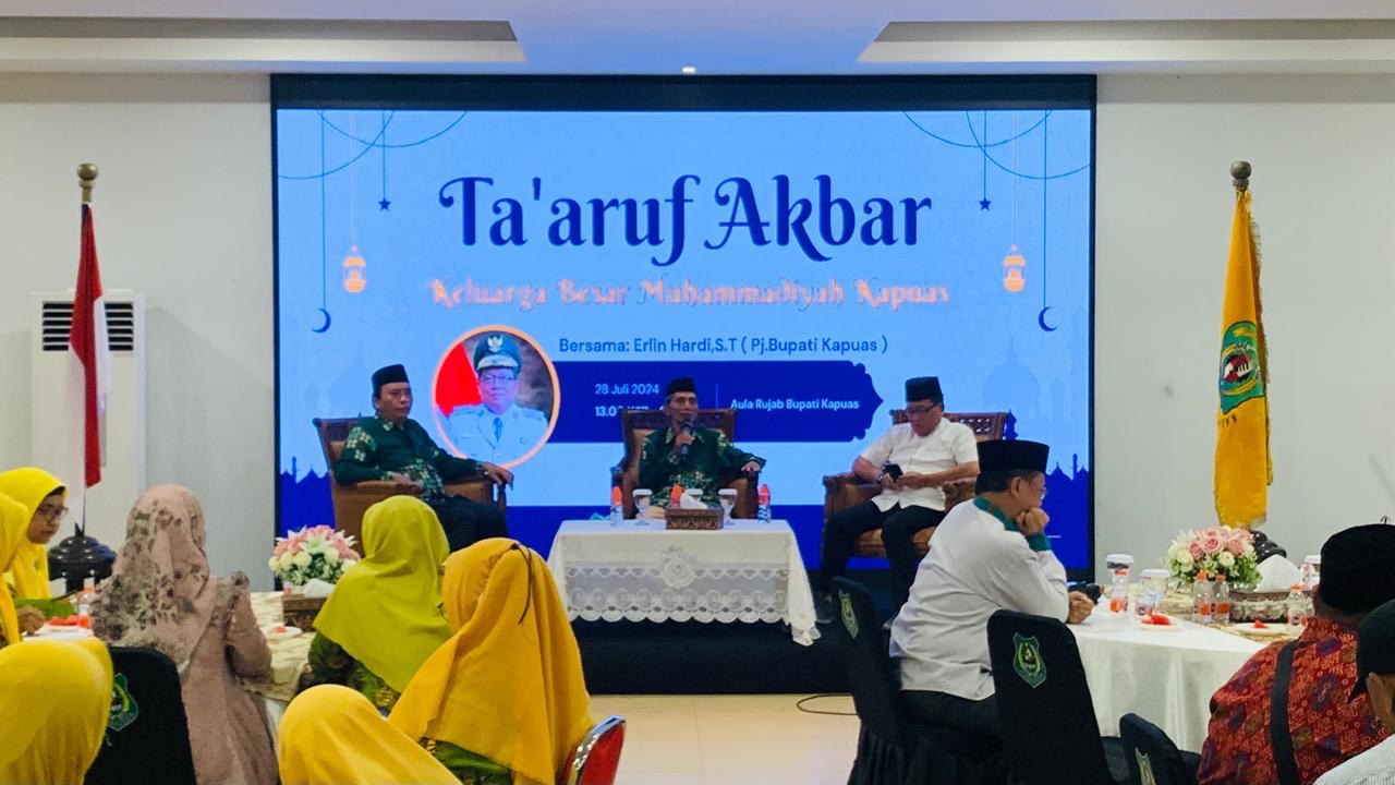 POSBORNEO.COM, KUALAKAPUAS – Penjabat (Pj) Bupati Kapuas, Erlin Hardi ST hadiri Ta’aruf Akbar bersama keluarga besar Muhammadiyah, di Aula Rujab Bupati setempat, Minggu (28/7/2024) sore.
