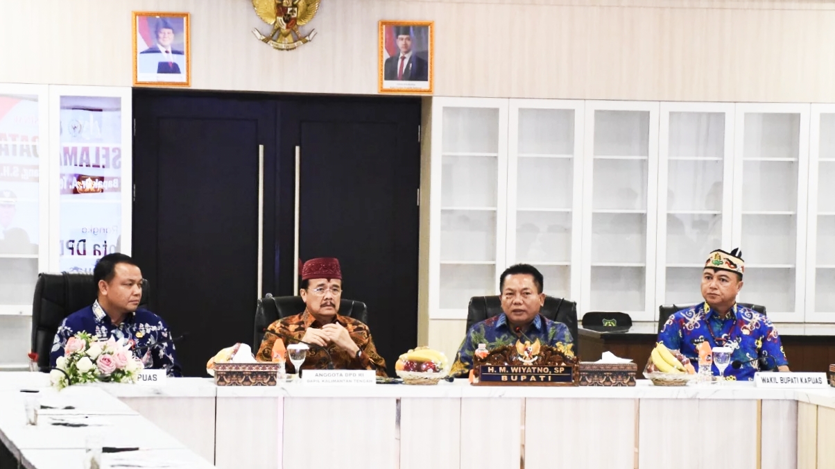 POSBORNEO.COM, KUALAKAPUAS – Bupati Kapuas H Muhammad Wiyatno didampingi Wakil Bupati Kapuas Dodo dan Penjabat (Pj) Sekretaris Daerah Usis I Sangkai menyambut dan menerima kedatangan Anggota Dewan Perwakilan Daerah Republik Indonesia (DPD RI) asal Kalimantan Tengah Dr Agustin Teras Narang dalam rangka kunjungan Reses ke Kabupaten Kapuas.