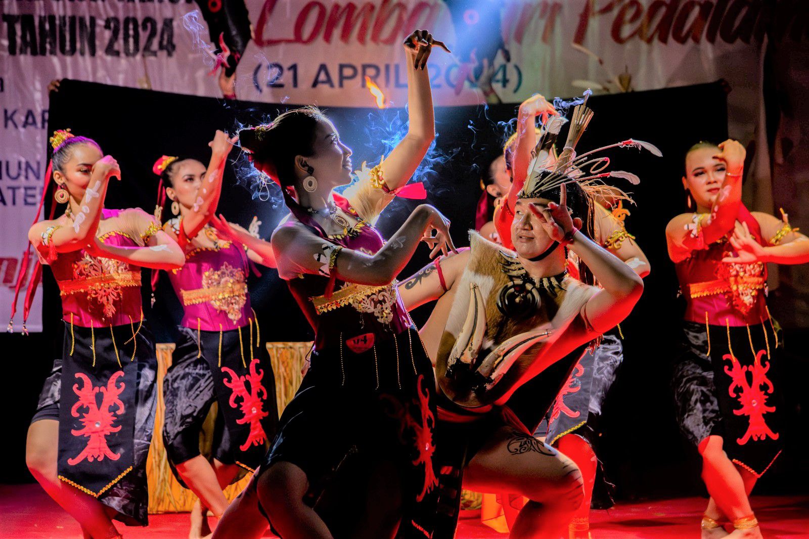 Salah satu penampilan peserta lomba tari pedalaman Festifal Seni Budaya Tingang Menteng Panunjung Tarung Kabupaten Kapuas tahun 2024, bertempat di Lapangan Bukit Ngalangkang Kapuas, Minggu (21/04/2024...
