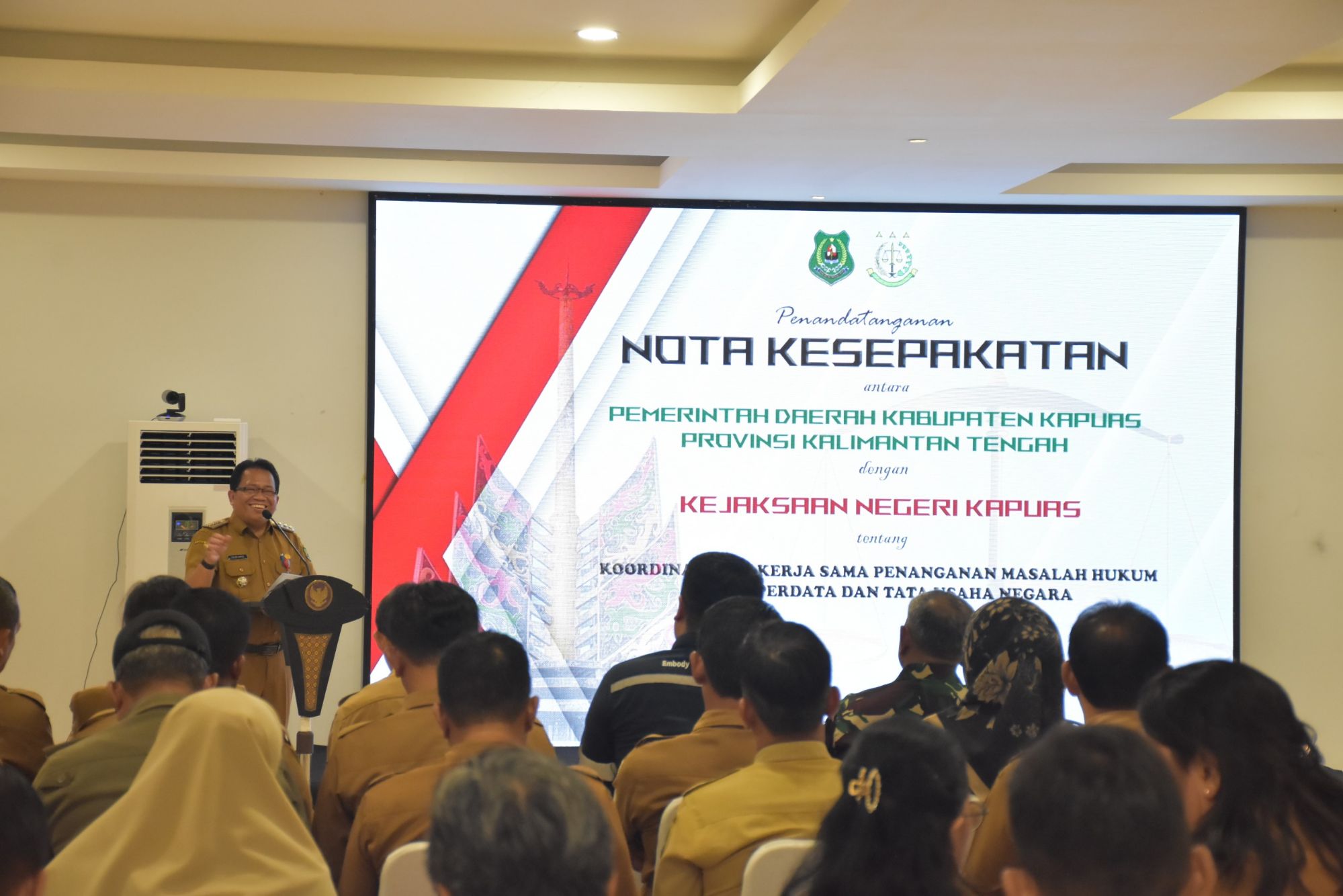POSBORNEO.COM, KUALAKAPUAS – Pemerintah Kabupaten Kapuas melaksanakan kegiatan Penandatanganan Nota Kesepakatan antara Kejaksaan Negeri Kapuas Tentang Koordinasi dan kerja sama penanganan masalah hukum bidang perdata dan tata usaha negara serta Penandatangan Nota Kesepakatan antara Pemerintah Kabupaten Kapuas dengan PT. Asmin Bara Bronang (ABB), tentang Program Corporate social Responsibility (CSR).