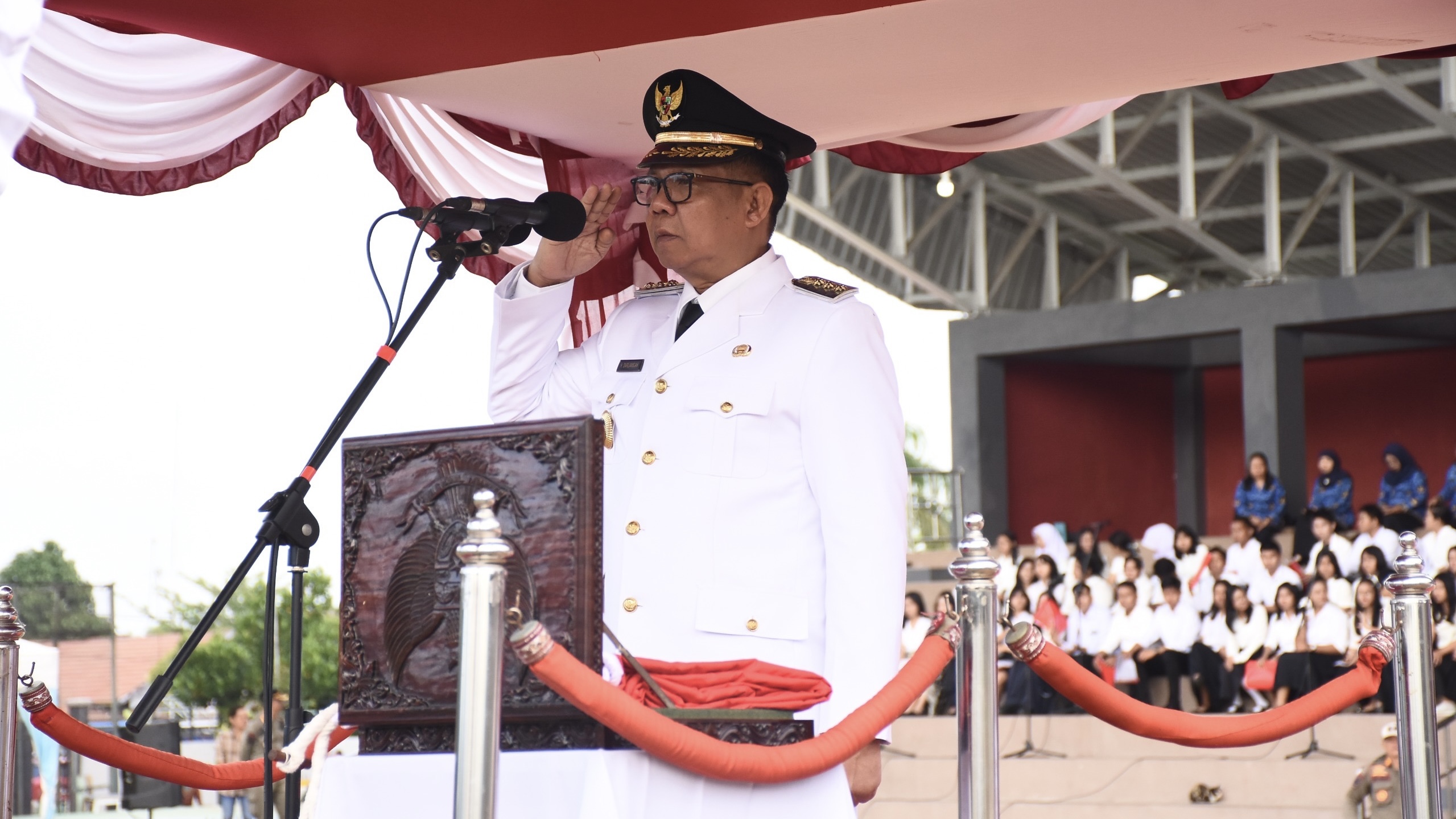 Penjabat (Pj) Bupati Kapuas H Darliansjah menjadi Inspektur Upacara (Irup) Peringatan Hari Ulang Tahun (HUT) Kemerdekaan Republik Indonesia ke-79 yang berlangsung di Stadion Panunjung Tarung Kuala Kapuas, Sabtu (17/8/2024) pagi.
