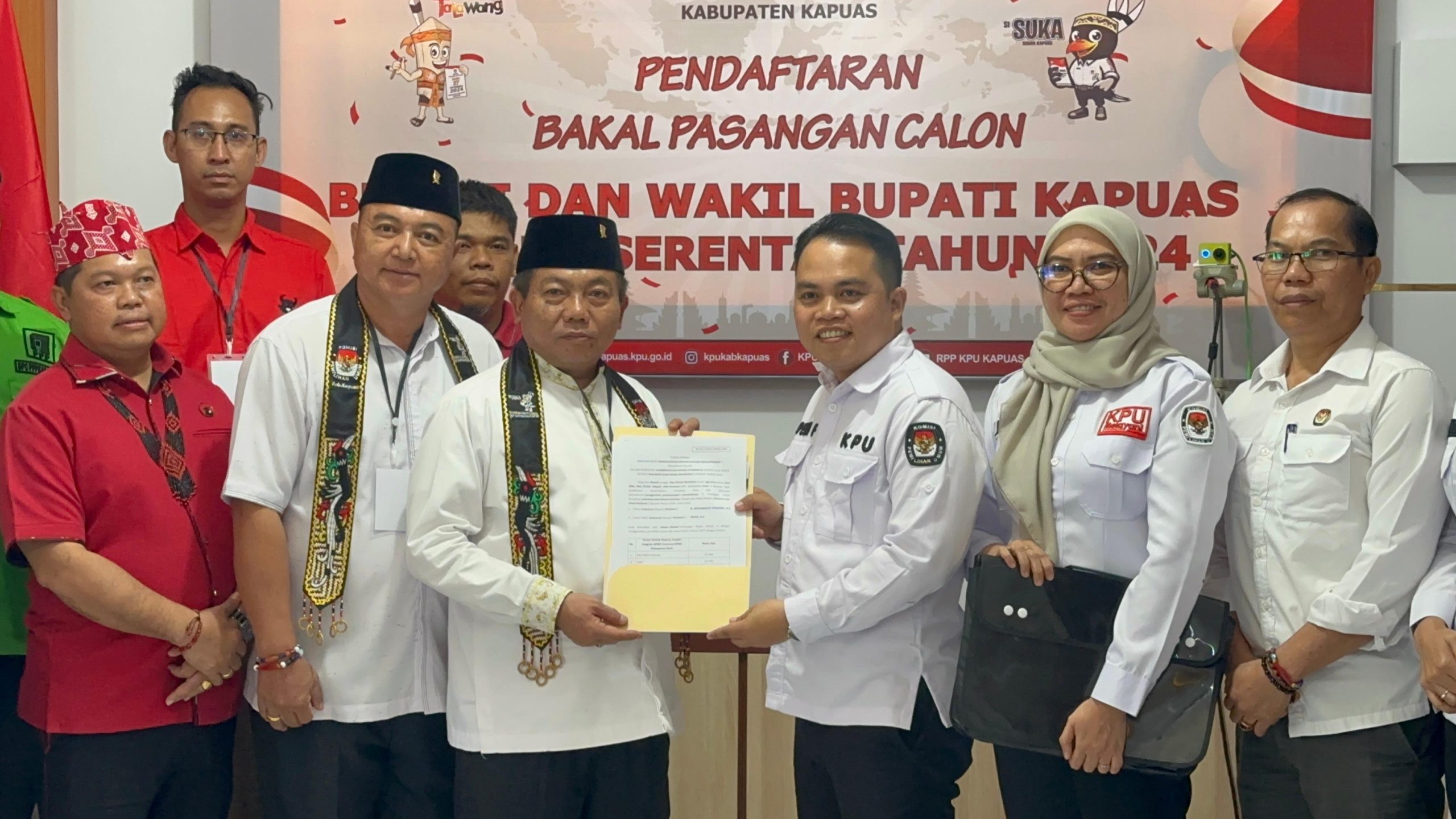 Pasangan yang mengusung jargon Kapuas Bersinar ini datang ke Sekretariat KPU Kapuas sekitar pukul 09.30 WIB.