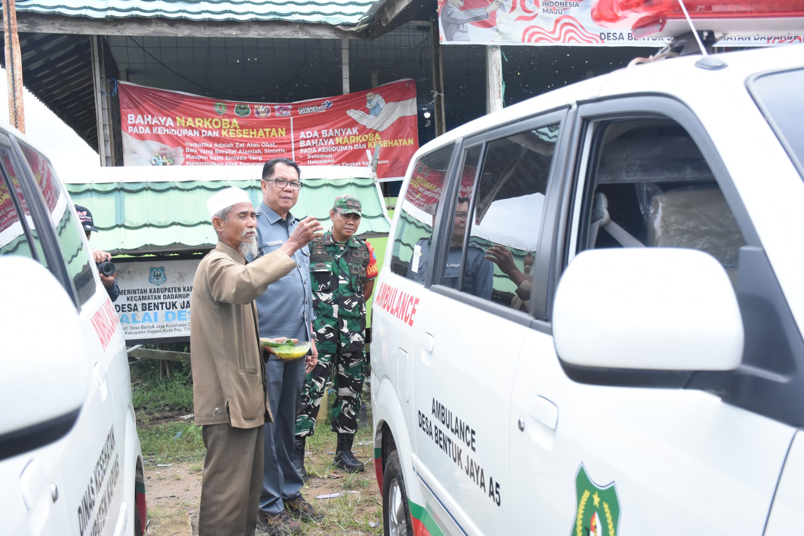 Penjabat (Pj) Bupati Kapuas Ir H Darliansjah M.Si serahkan dua mobil ambulance kepada Pemdes Bentuk Jaya, di Balai Desa Bentuk Jaya, Kecamatan Dadahup, Selasa (10/9/2024) POSBORNEO.COM, KUALAKAPUAS &#...