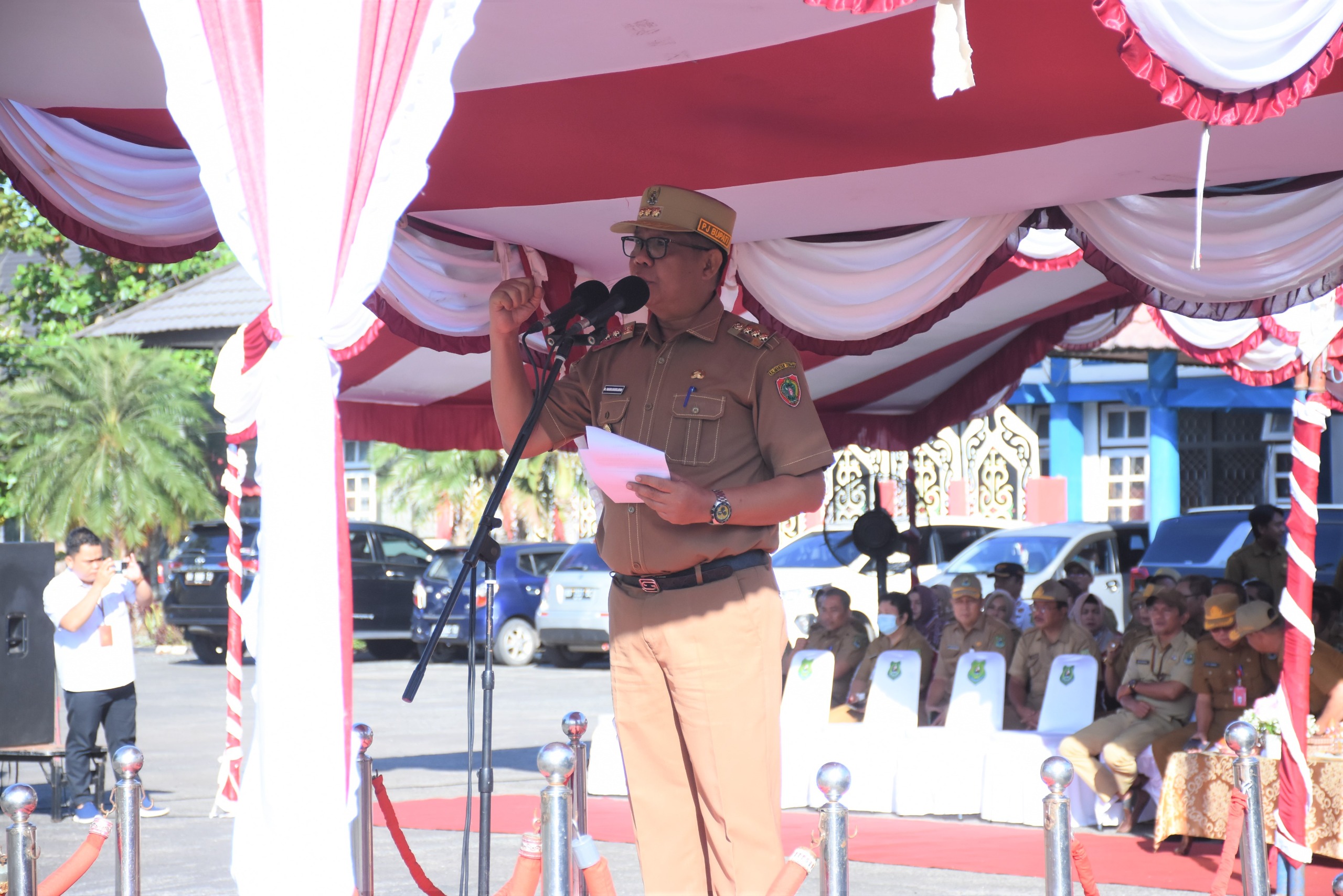 Pj Bupati Kapuas H Darliansjah saat menjadi Pembina Apel Gabungan Netralitas ASN seluruh perangkat daerah di lingkungan Pemerintah Kabupaten Kapuas, Senin (9/9/2024) di Halaman Kantor Bupati Kapuas. P...