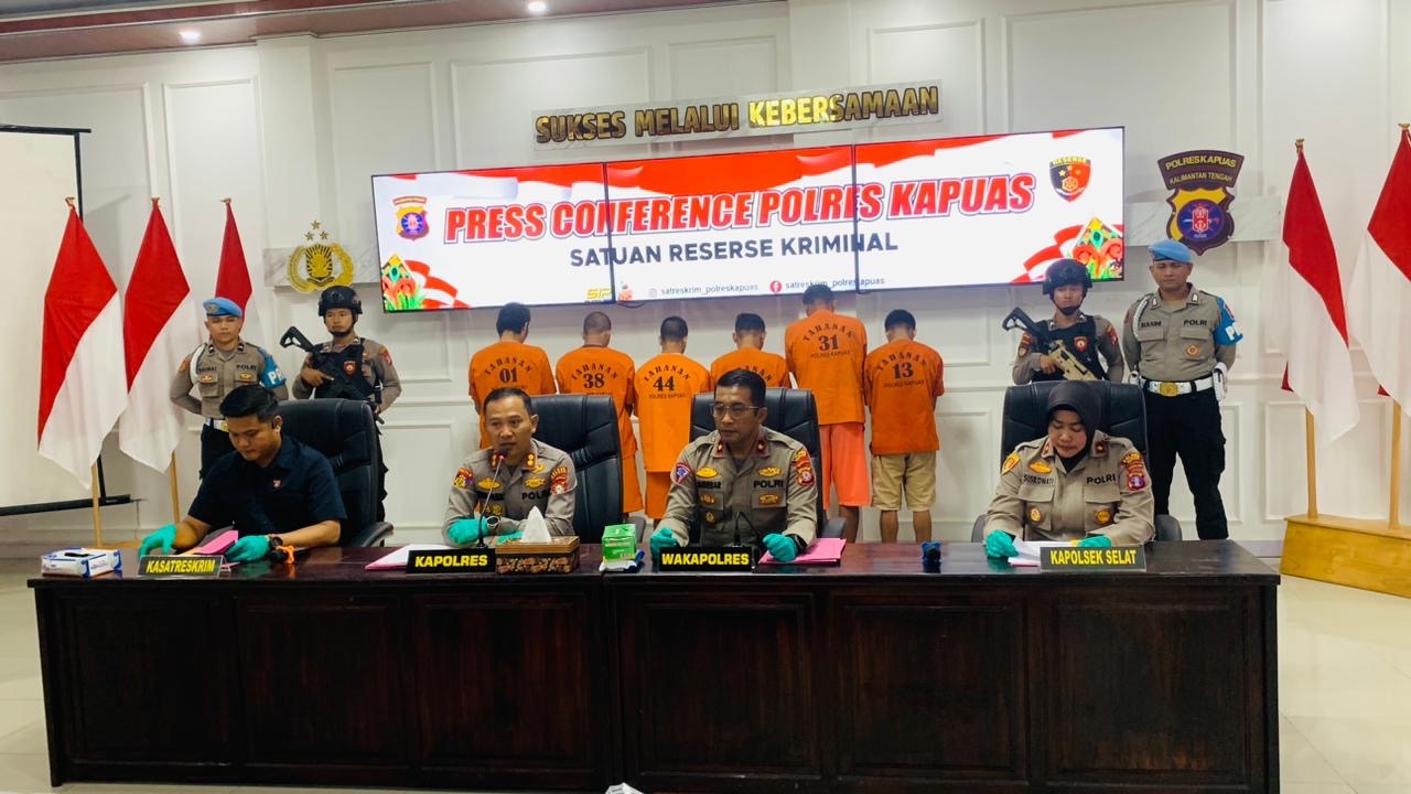 Kapolres Kapuas, AKBP Gede Pasek Muliadnyana didampingi Wakapolres Kompol Cristian Maruli Tua Siregar, Kasatreskrim AKP Abdul Kadir Jailani dan Kapolsek Selat saat rilis pemgungkapan kasus, Kamis (3/7...