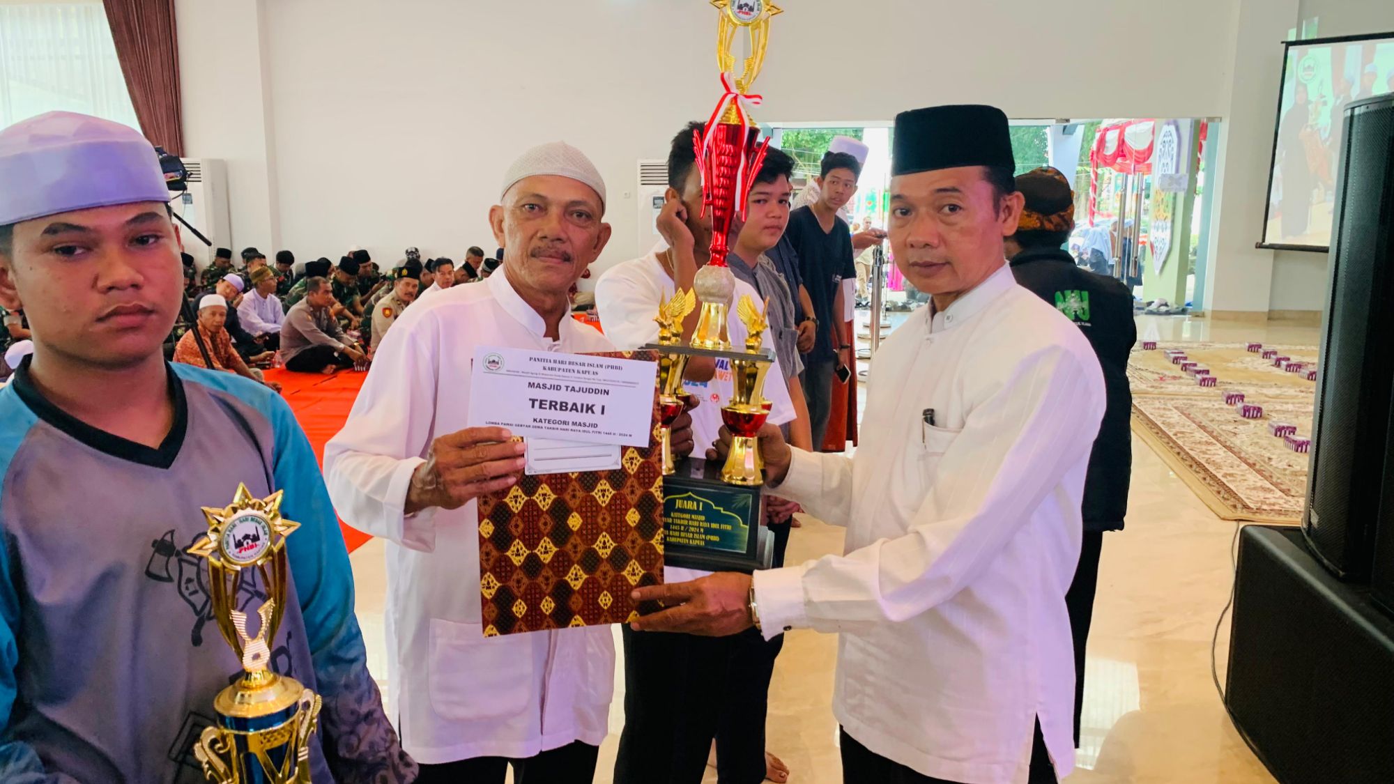 Penasehat Masjid Tajuddin, Tatang saat menerima hadiah Terbaik I yang diserahkan Ketua Umum PHBI Kapuas, H Nabchan, Senin (29/4/2024) sore POSBORNEO.COM, KUALAKAPUAS – Masjid Tajuddin Kapuas rai...