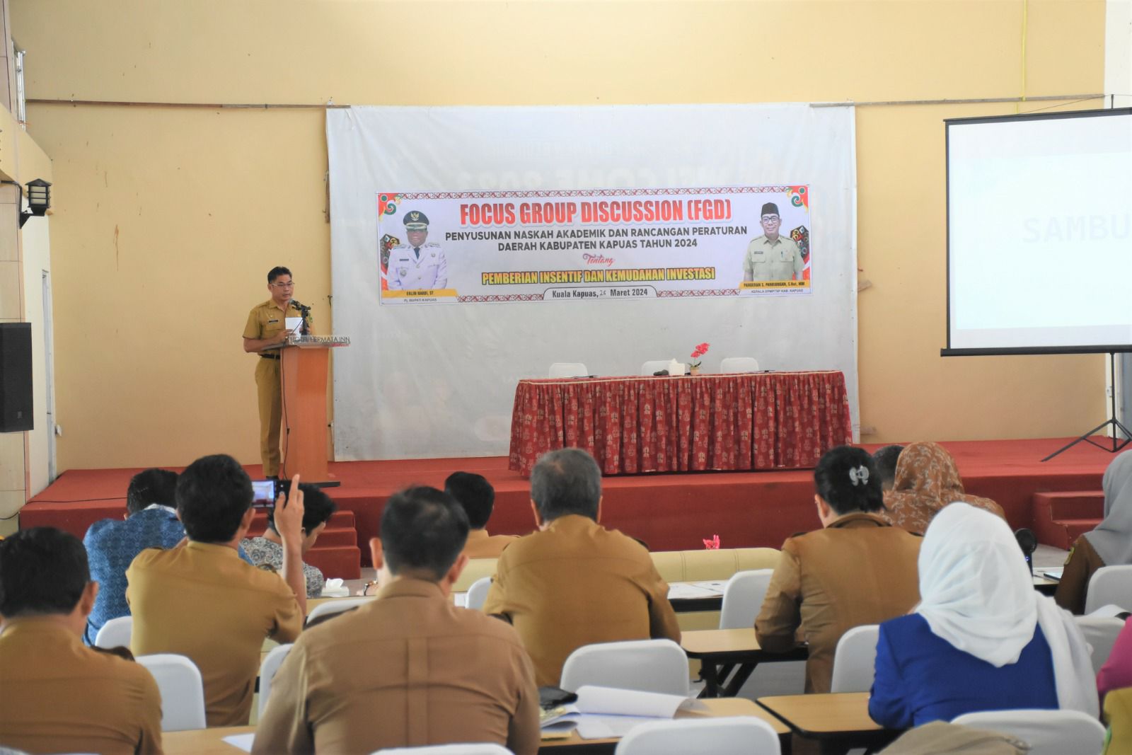 Staf Ahli Bupati Bidang Ekonomi Keuangan dan Pembangunan, Jaya saat membuka secara resmi kegiatan Focus Group Discussion (FGD) yang berlangsung di Ballroom Permata Inn Jalan Seroja Kuala Kapuas, Selas...