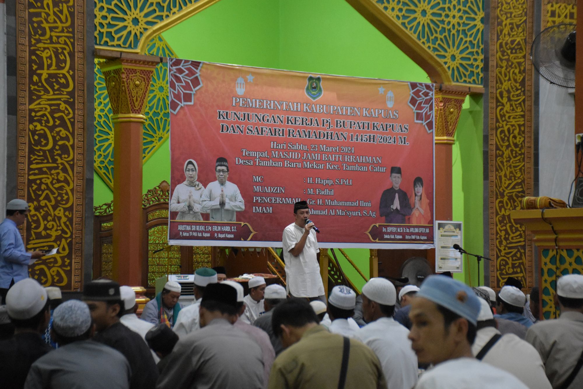 Asisten III Setda Kapuas Ahmad M Saribi saat memberikan sambutan pada kegiatan Safari Ramadhan 1445 H Pemerintah Kabupaten Kapuas di Masjid Jami Baiturrahman, Tamban Baru Mekar KM. 20, Kecamatan Tamba...