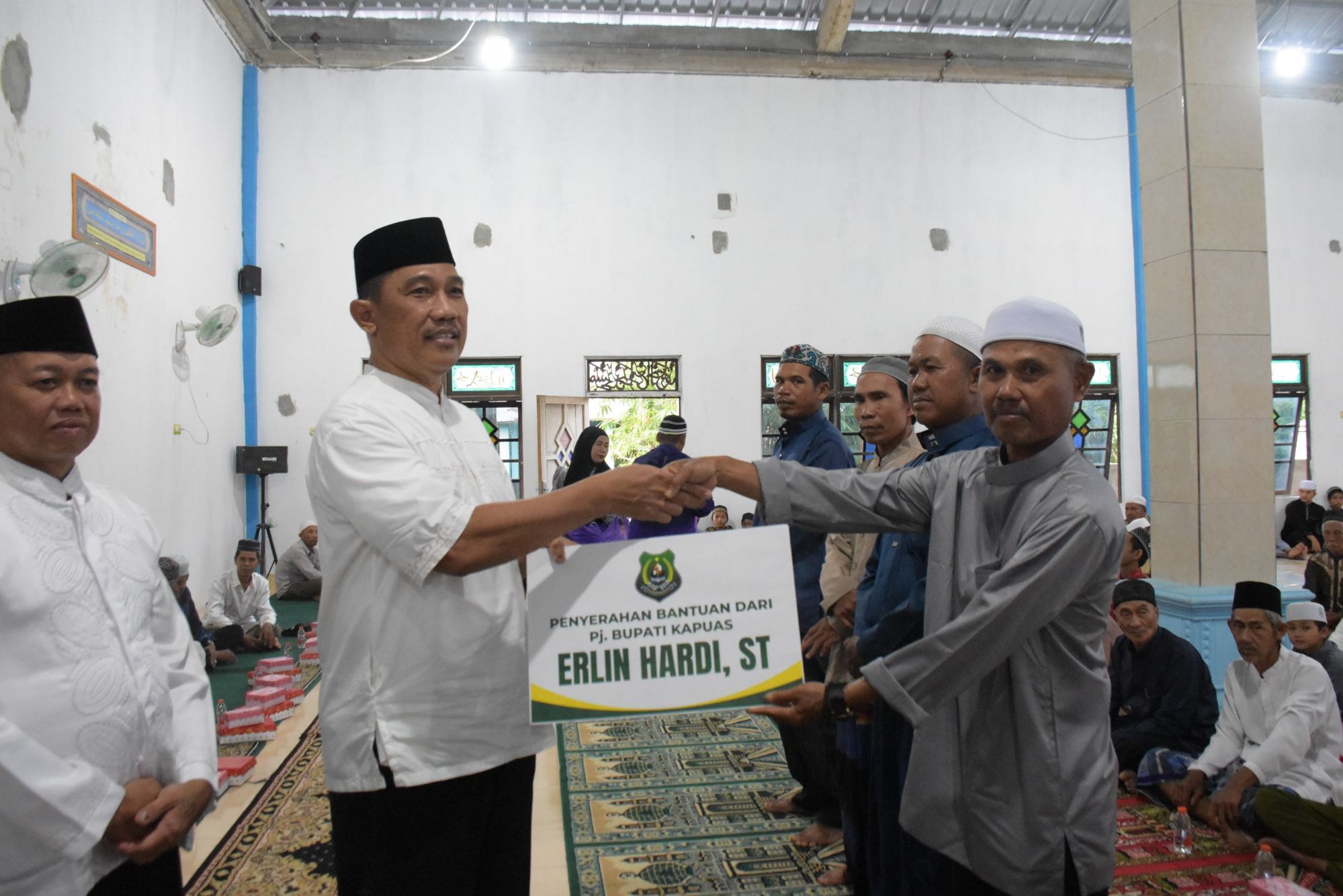 Asisten II Setda Kapuas, Salman saat menyerahkan bantuan secara simbolis, pada kegiatan Safari Ramadan 1445 H/ 2024 M Pemkab Kapuas di Masjid Besar Ar-Rahman, Desa Dadahup, Kecamatan Dadahup, Jumat (2...