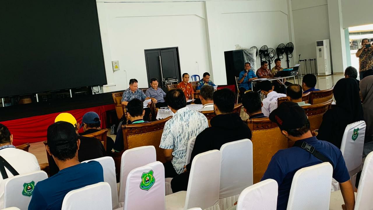 Foto : Asisten I Setda Kapuas, Romulus didampingi Plt Kepala Dinas Transmigrasi dan Tenaga Kerja Kapuas, Raison saat pimpin mediasi pekerja yang terkena PHK dengan PT Karya Sejati di Aula Rujab Bupati...