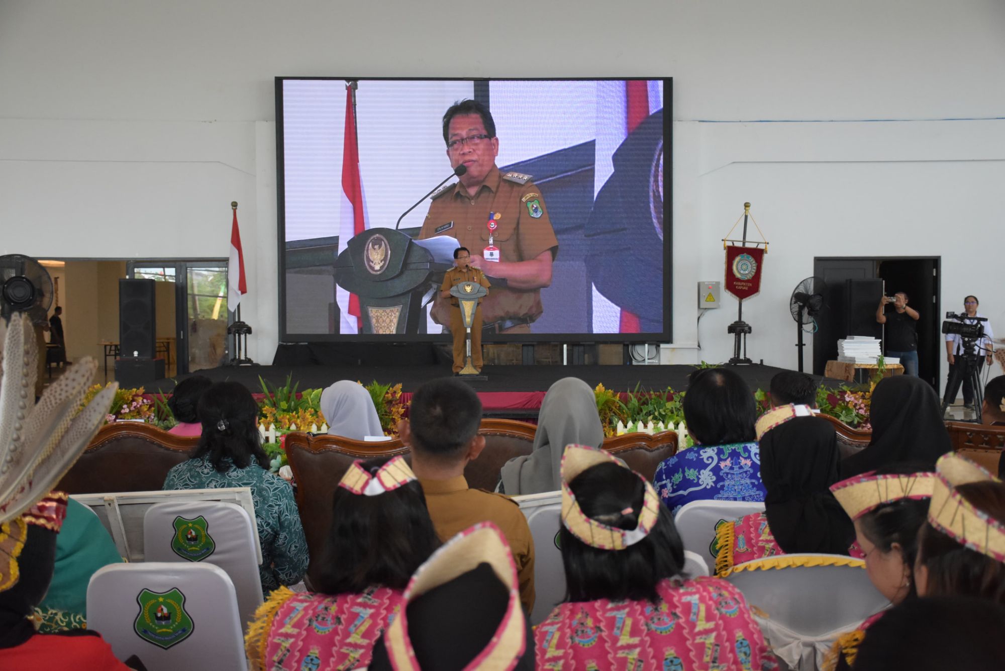 Pj Bupati Kapuas, Erlin Hardi saat memberikan sambutan pada Penutupan Jambore Kader PKK Tingkat Kabupaten Kapuas 2024, di Hall Rumah Jabatan Bupati Kapuas, Selasa (5/3/2024). POSBORNEO.COM, KUALAKAPUA...