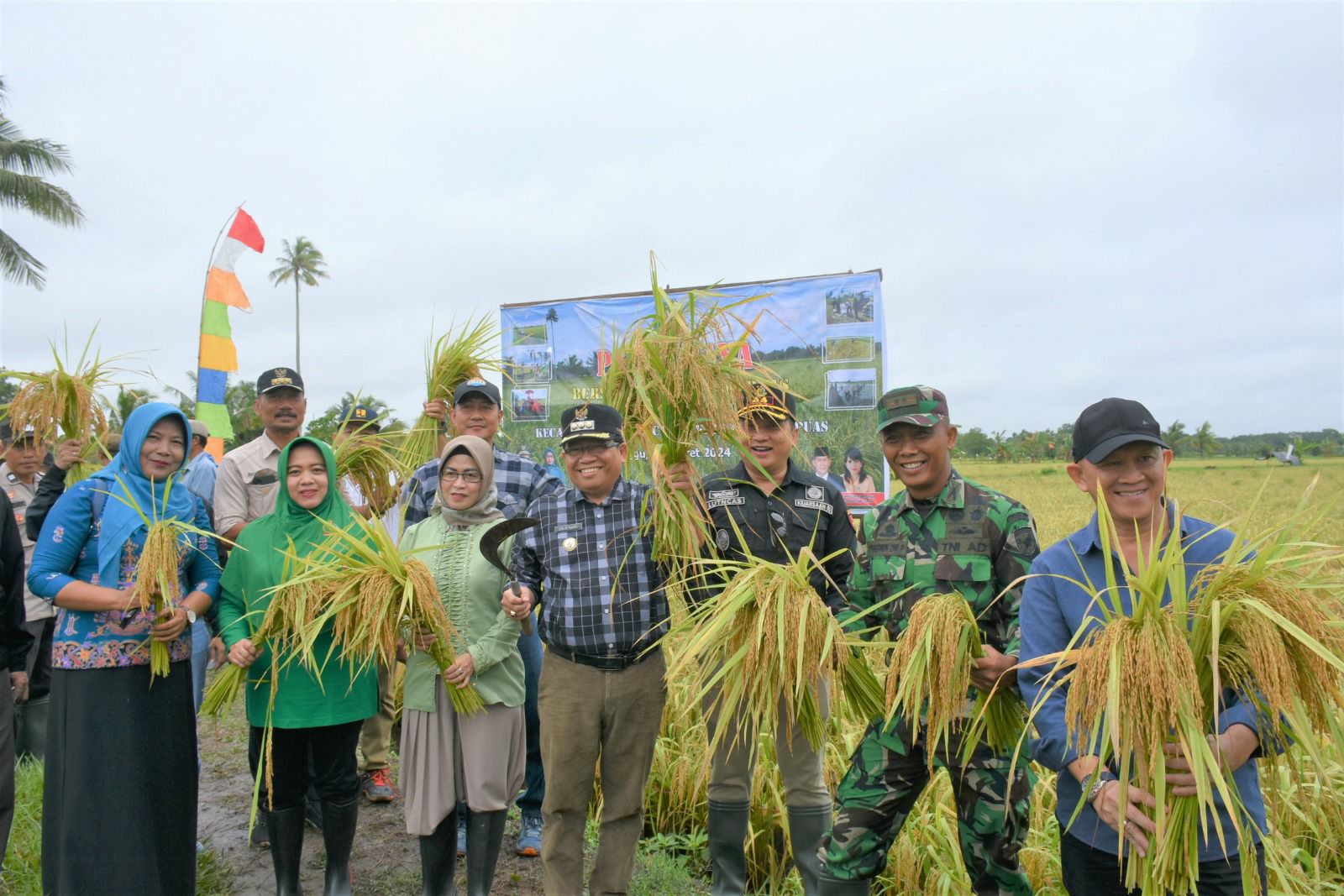 Pj Bupati Kapuas Erlin Hardi didampingi Pj Ketua TP PKK Kapuas Agustina Erlin Hardi, Sekda Kapuas Septedy dan Forkopimda saat panen raya di Desa Warna Sari, Kecamatan Tamban Catur, Minggu (10/3/2024)....