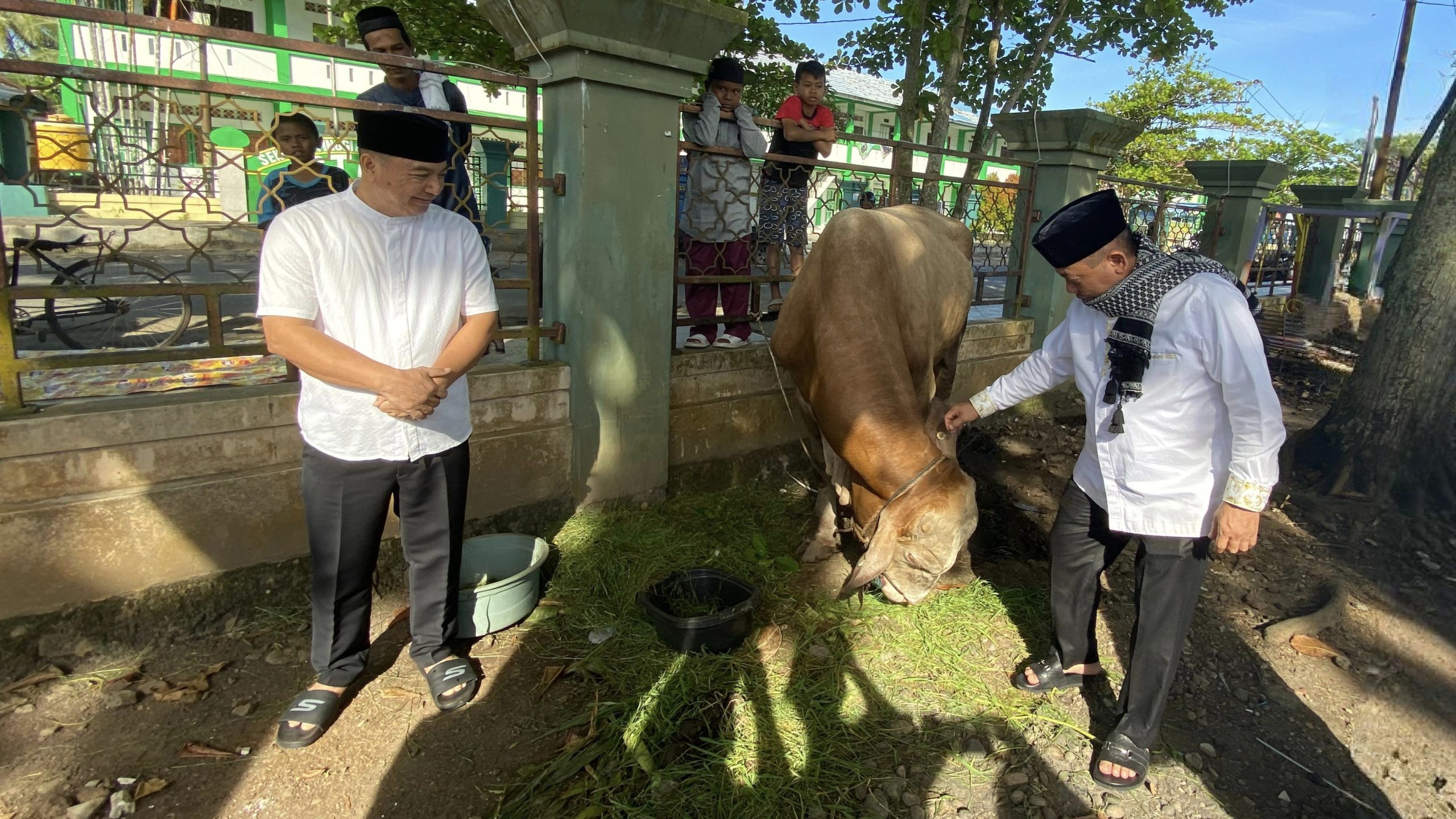 POSBORNEO.COM, KUALAKAPUAS – Bupati Kapuas H Muhammad Wiyatno dan Wakil Bupati Kapuas Dodo didampingi Sekretaris Daerah Kabupaten Kapuas Usis I Sangkai menyerahkan bantuan sapi kurban dari Presi...