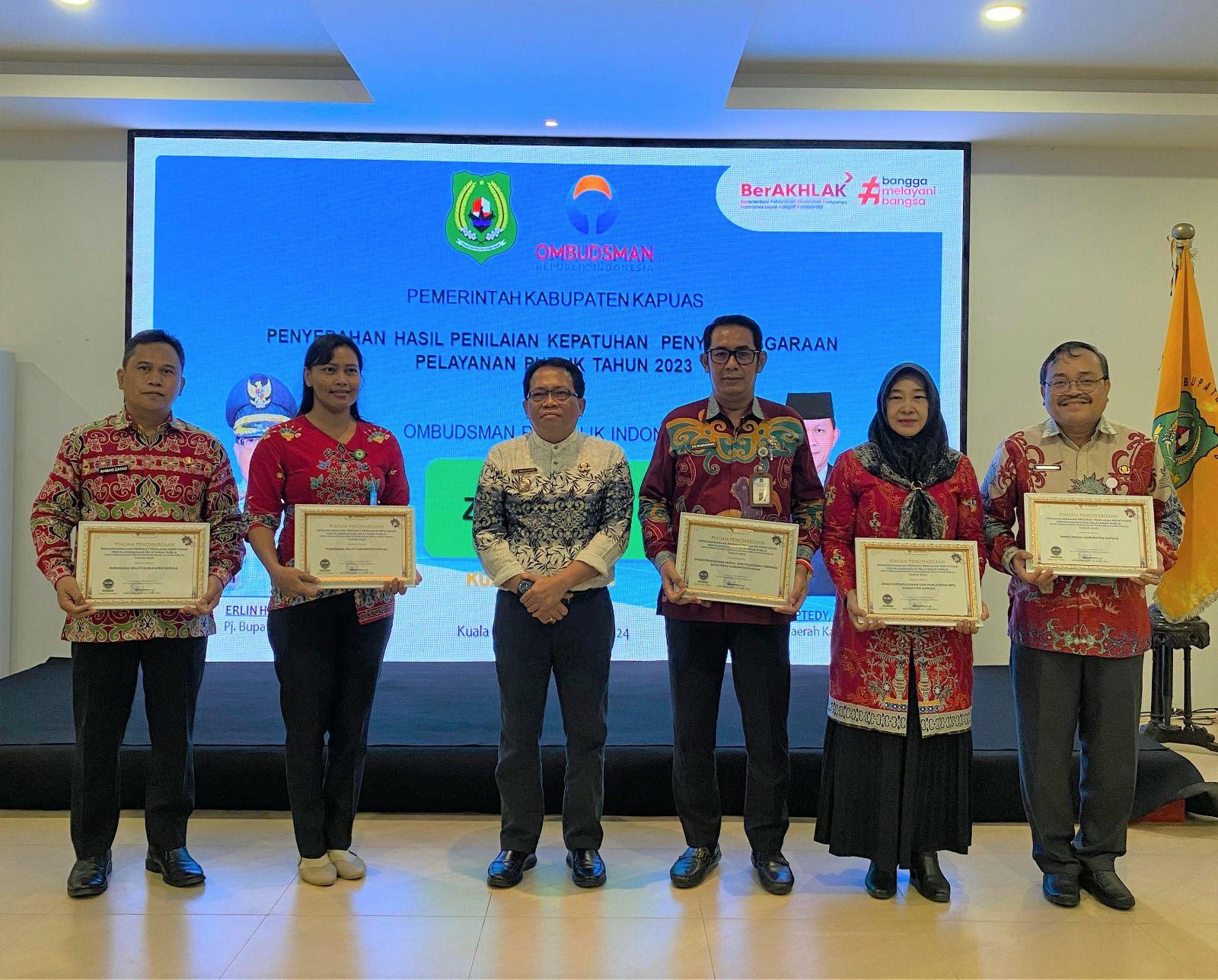 Pj Bupati Kapuas Erlin Hardi saat bersama sejumlah perangkat daerah yang menerima hasil penilaian kepatuhan penyelenggaraan pelayanan publik, Kamis (25/1/2024) POSBORNEO.COM, KUALAKAPUAS – Pemer...